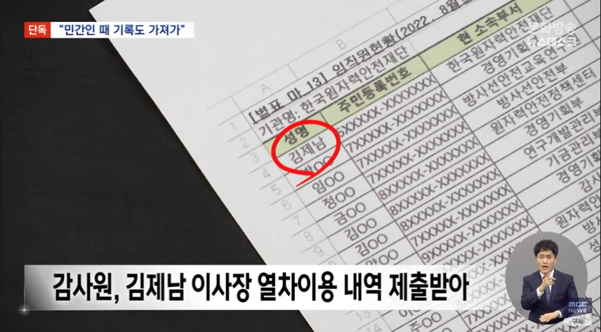 그런데 MBC 취재 결과, 감사원이 김제남 이사장의 열차 이용 내역을 제출받은 것으로 확인됐습니다.
