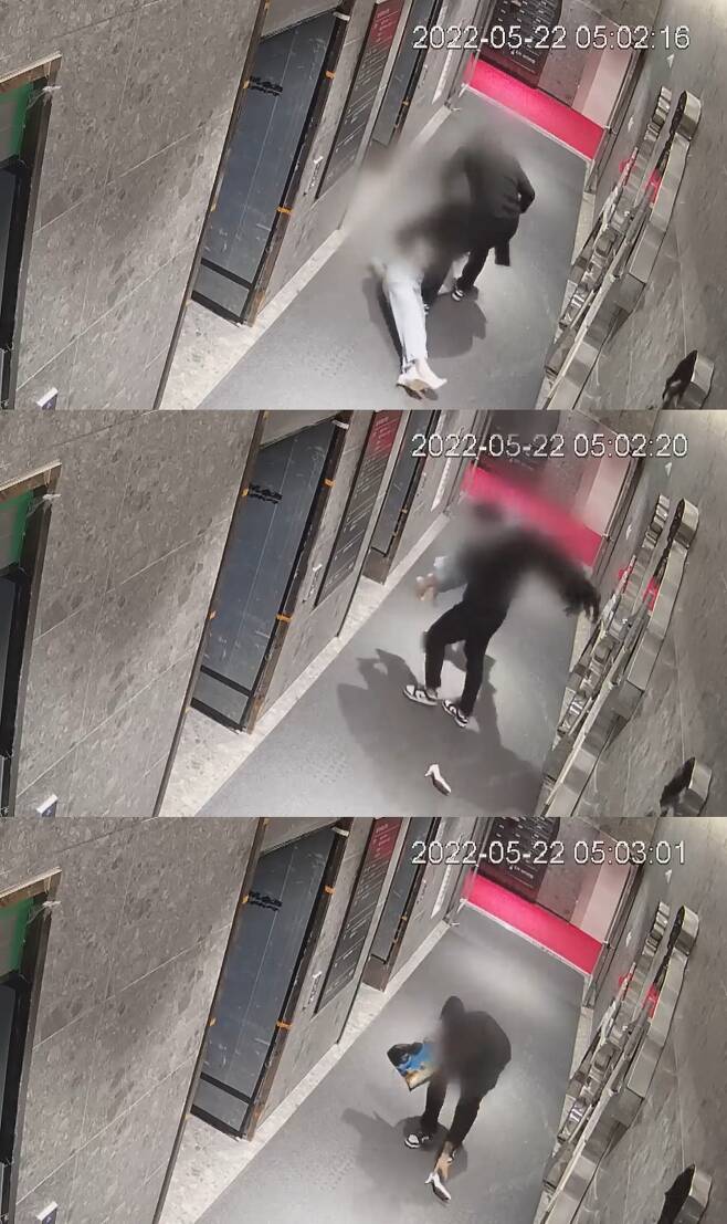 이후 남성은 주먹으로 A씨를 가격하려다 멈칫하더니 A씨 상태를 살폈다. A씨가 꿈틀거리자마자 남성은 수차례 발길질했고, A씨는 저항하려는 듯 다리 한쪽을 쭉 뻗었다가 그대로 경직된 채 기절했다.