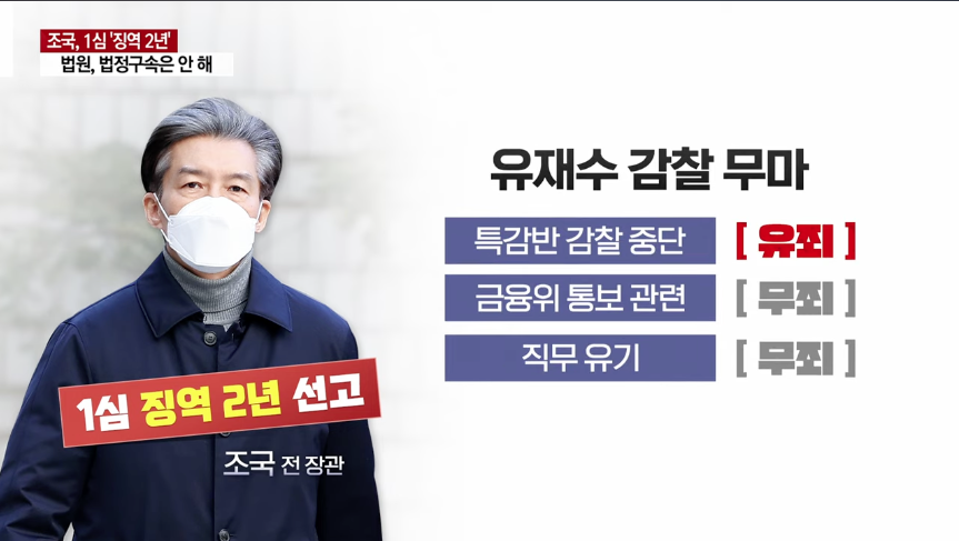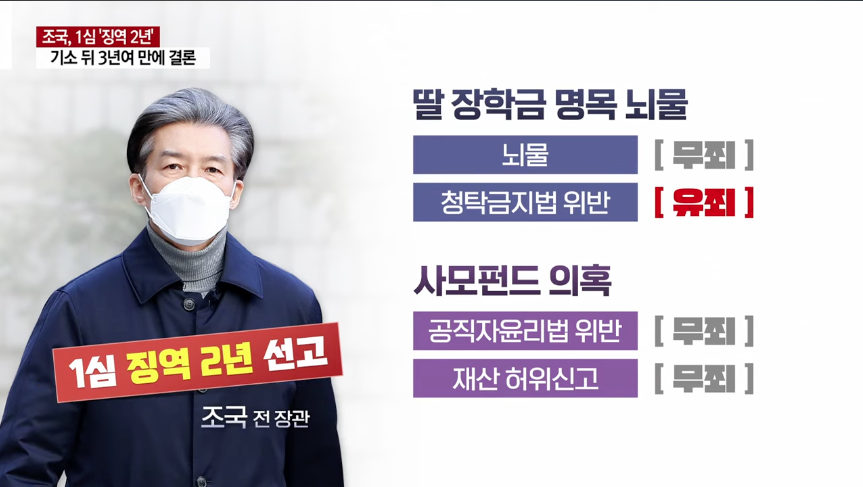 앞서 보신 대로 조국 전 장관이 법원에서 징역 2년을 선고받았습니다.