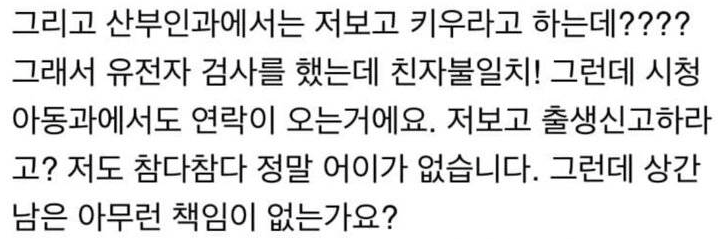 청주시에서 발생한 일인데.. 청주시는 남성에게 출생신고를 해달라 설득한다고 합니다.. 출생신고를 한다면 남성은 아이를 법적 자식으로서 받아들여진다는 의미... 남성의 입장에선 과연 할까요? 청주시에선 출생신고를 하고..소송을 통해 친자가 아니라는 사실을 확인하면 시에서 양육시설에서 키울 수 있다고 언급했다는데.. 남성이 출생신고하고.. 청주시가 여러 이유를 들어 갑자기 뒤로 빠져버리면... 결국 남성이 다 책임져야 할 상황에 처해질지도 모르겠습니다.