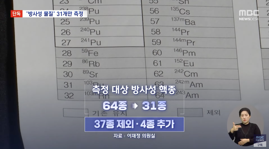 스트론튬, 텔루륨, 루비듐 등 37종을 무더기로 빼버리고, 새로 4개를 추가해, 31종만 측정하겠다는 계획입니다.