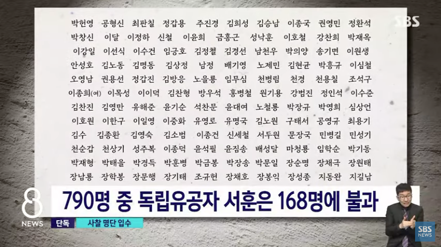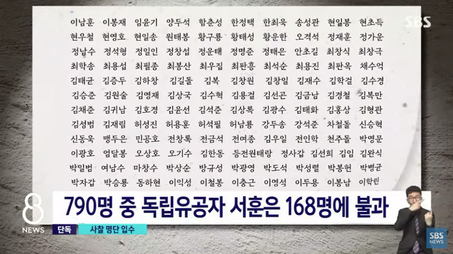 온갖 폭압과 회유에도 굴하지 않고 일제에 끝까지 저항했던 790명이었지만, 광복 이후 지금껏 독립유공자로 인정받아 서훈을 받은 것은 168명에 불과합니다.
