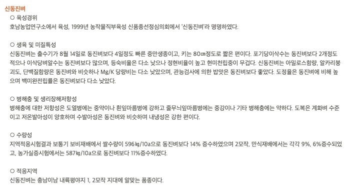 신동진벼라는게 있습니다.. 벼 품종입니다.