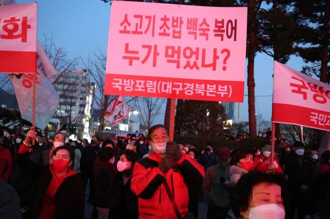 尹후보 마산역 유세서 '초밥 누가 먹었나' 피켓 들어