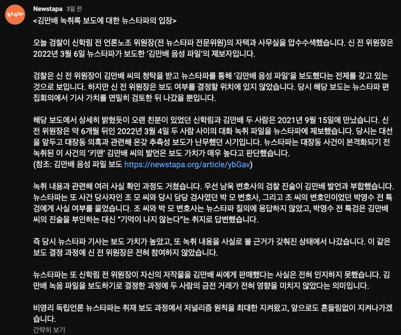 일단 관련해서 뉴스타파의 입장도 있습니다.