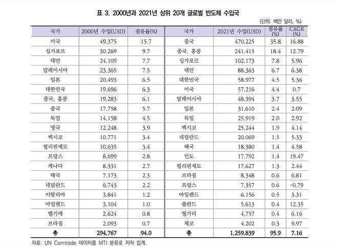 끝으로 대통령님은 "비싼 물건을 파는 나라가 잘 사는 나라"라며 최첨단 반도체를 통해서 우리가 그렇게 되어야 한다고 했습니다. 한국은 세계 최대의 메모리 반도체 생산국이며, 금액을 기준으로 세계 5위의 반도체 수출국입니다. (대외경제정책연구원 2023년 보고서) 그럼 세계 최대의 반도체 수입국은 어디일까요? 전체 반도체 수입의 54%에 이르는 중국(홍콩 포함)입니다.