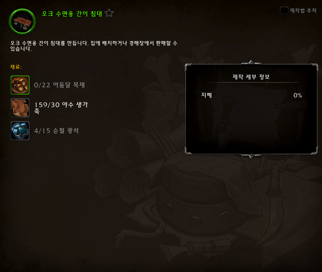 야수 생가죽 : 드레노어.. 야수 사냥 후 무두질로 채취, 외양간에서 제작의뢰