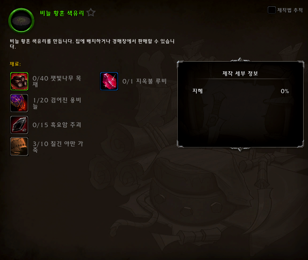 질긴 아만 가죽 : 대격변 지역 야수 사냥 후 무두질.. 이후 가죽 세공으로 제작
