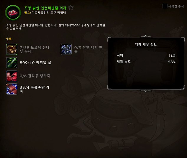 월드 오브 워크레프트.. 하우징 관련 장식중.. 가죽세공으로 제작할 수 있는 장식들..