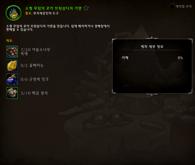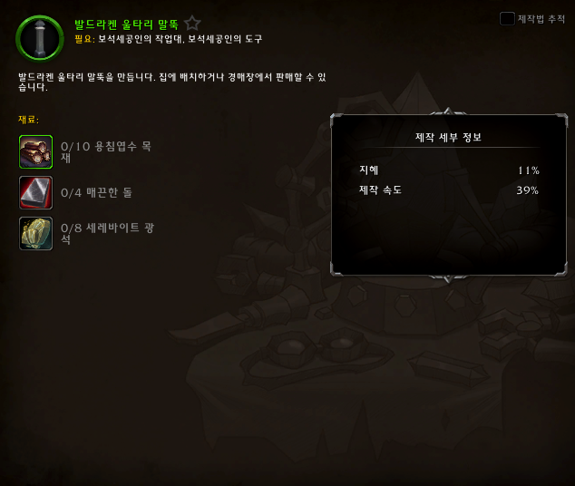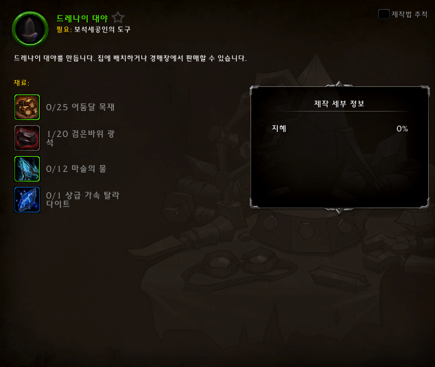 월드 오브 워크레프트.. 하우징 관련 장식중.. 보석세공으로 제작할 수 있는 장식들..